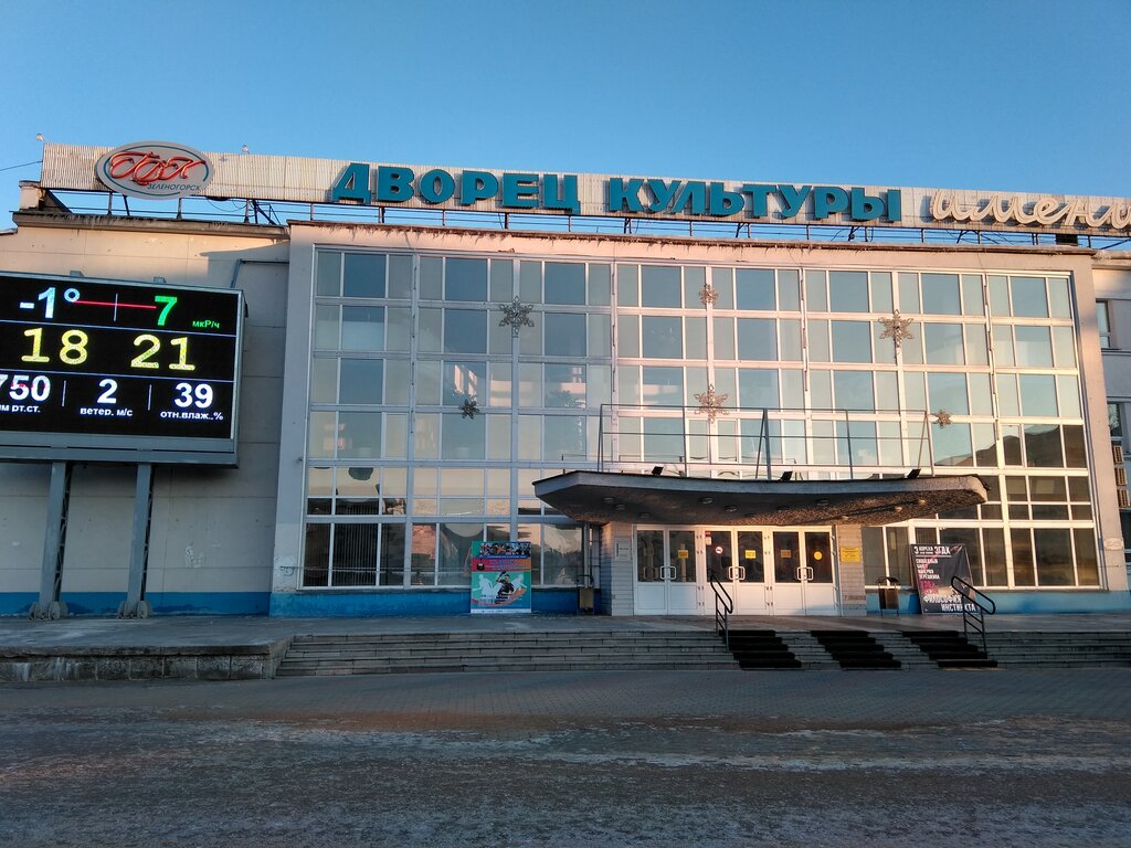 На сегодняшний день Дворец культуры располагает благоприятными условиями для развития культуры и творчества в Зеленогорске. Во Дворце функционирует 12 репетиционных классов, большой концертный зал на 612 посадочных мест, малый зал на 100 посадочных мест, танцевальный зал «Селена» на 350 посадочных мест, кафе, зимний сад, музейно-выставочный центр АО «ПО «ЭХЗ».