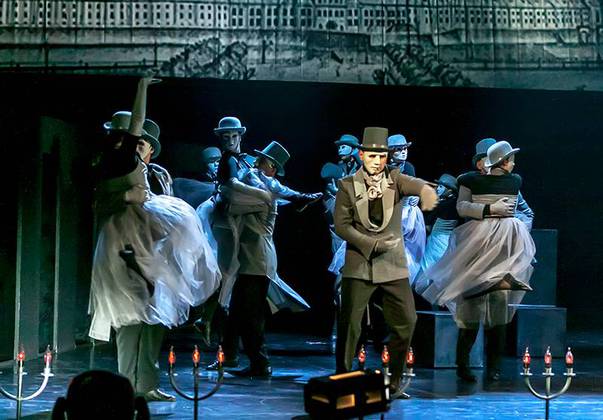 В спектакле «Маскарад» — мистический ледяной Петербург, за внешним холодом которого кипят нешуточные человеческие страсти. Музыка, свет, движение завораживают так, что порою мы теряемся: два века назад происходит действие или уже сегодня? это реальный мир или мир нашей души? всё что мы видим — грубо земное или уже духовно небесное?