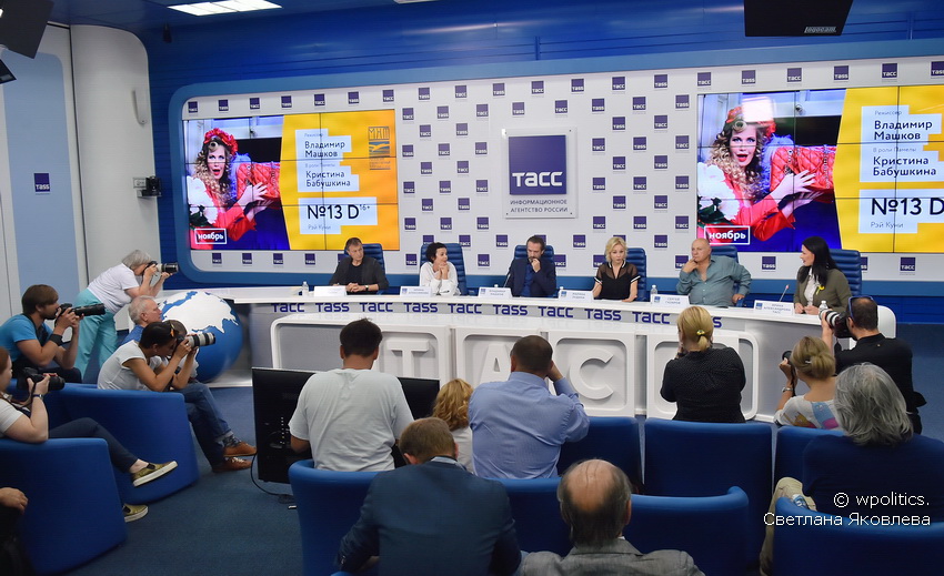 В пресс-конференции приняли участие: художественный руководитель Московского театра Олега Табакова народный артист РФ Владимир Машков, народная артистка РФ Марина Зудина, директор Московского театра на Таганке Ирина Апексимова, режиссер, актер Сергей Газаров и актер, режиссер Московского театра Олега Табакова Александр Марин.