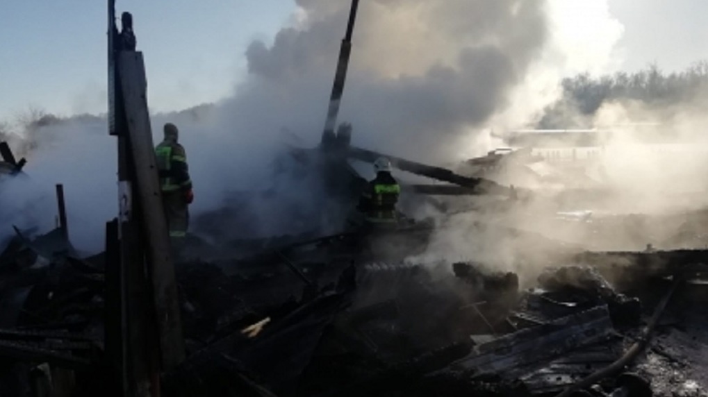 По предварительным данным, причина пожара — нарушение правил эксплуатации печного отопления. На место выехали следователь и пожарные.