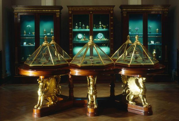 Это не просто витрины с украшениями. Перед вами императорская сокровищница. Здесь собраны драгоценности из коллекций семьи Романовых, дипломатические подарки иностранных правителей российскому двору и работы мастеров, создававших украшения для придворных церемоний. История кладовой начинается в XVIII веке, когда Екатерина II решила собрать и сохранить лучшие ювелирные произведения императорской коллекции.