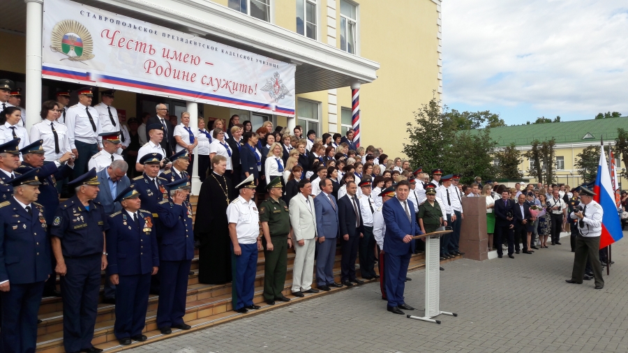 Торжественная линейка, посвященная Дню знаний, состоялась и в Ставропольском президентском кадетском училище. В мероприятии в качестве почетного гостя принял участие заместитель председателя Думы Ставропольского края Виктор Гончаров.