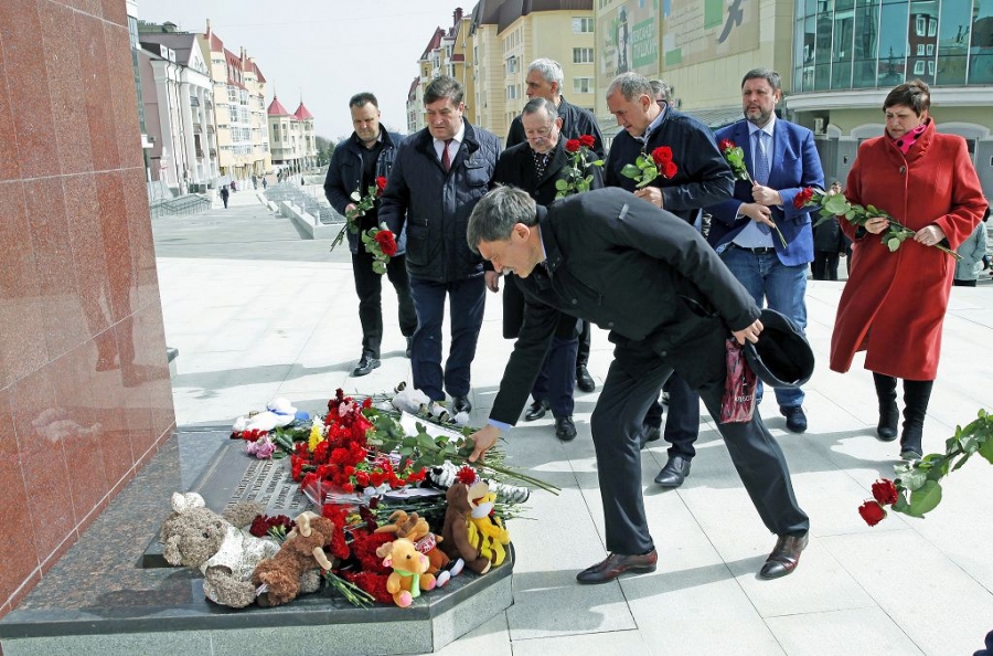 Депутаты и сотрудники аппарата Думы Ставропольского края почтили память погибших при пожаре в торговом центре города Кемерово. Они возложили цветы к монументу «Ангел-хранитель» на Александровской площади Ставрополя, там возник стихийный мемориал памяти жертв трагедии. Ставропольцы приносят к нему цветы, игрушки и свечи.