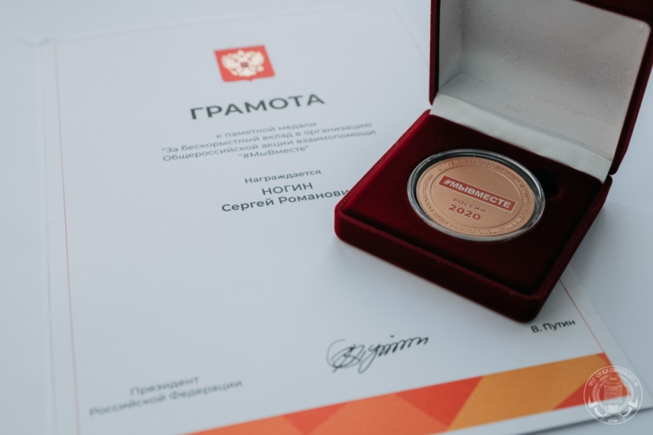 Молодому парламентарию Сергею Ногину вручена памятная медаль «За бескорыстный вклад в организацию Общероссийской акции взаимопомощи «#МыВместе», организованной в Российской Федерации в период борьбы с распространением новой коронавирусной инфекции (COVID-19).
