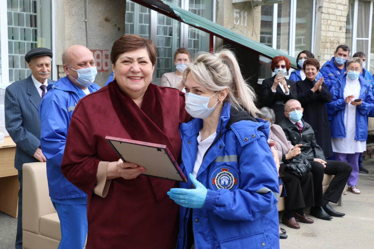 Сегодня на территории Ставропольской краевой клинической станции скорой медицинской помощи состоялось торжественное мероприятие по чествованию медиков. От депутатского корпуса коллектив и ветеранов медучреждения с профессиональным праздником поздравила председатель комитета по социальной политике и здравоохранению Думы края Валентина Муравьёва. Она вручила коллективу медучреждения и медикам благодарственные письма Думы и комитета, а также ценный подарок – наручные часы с символикой краевого парламента врачу анестезиологу-реаниматологу Михаилу Пилюку.