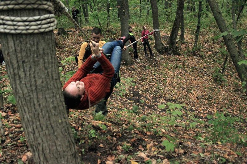 Завершился КМТ лекцией о практическом применении веревочных дистанций в походах, во время которой участники попробовали самостоятельно переправиться через овраг.