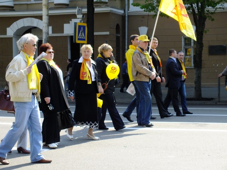 Во главе колонны шли секретарь Бюро Дмитрий Носков, глава общественной организации «Дети войны» Нина Землянская, руководители партийный ячеек.