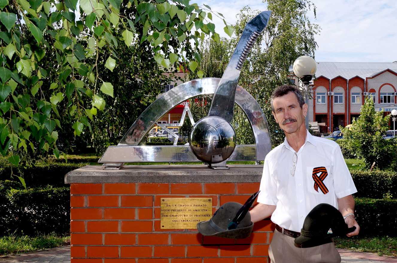 - … Исходя из того, что по утверждению русской стороны в Зеленом Яре имеются многочисленные одиночные захоронения итальянских солдат, нами (Кьес, Батистелла и Понкато) был предпринят поиск таких захоронений в сопровождении профессора Морозова. Профессор Морозов с большим трудом уговорил водителя большого автомобиля провезти нас через поля на юго-запад от Новой Калитвы. Было нелегко найти точное место знаменитого «кровавого перекрестка», поскольку никаких следов прошедших боев в этом месте не осталось. Однако, когда профессор остановил машину в небольшой низине, где сходились в одном месте несколько перпендикулярных друг-другу рядов больших деревьев, мы поняли, что оказались возле той самой братской могилы, «оплаченной (по словам военного священника Пеппино Приско) кровью альпийских стрелков батальона «Аквила». Действительно, на небольшом ровном участке почвы мы быстро обнаружили несколько фрагментов костей, а при более внимательном осмотре – два фрагмента бедренной кости. Останки были помещены доктором Батистелла в небольшой контейнер и по возвращении в Россошь эти фрагменты были замурованы в основание строящегося памятника.