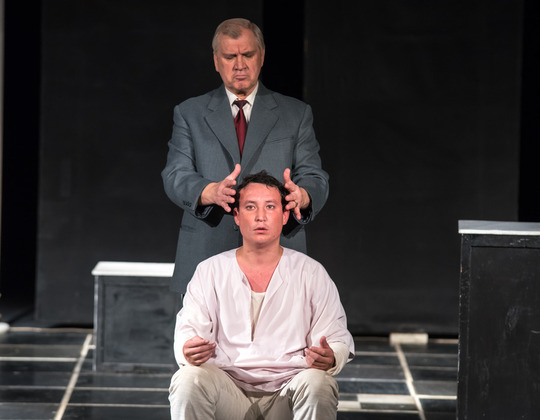 В репертуаре театра – это спектакль рекордсмен, ведь более 400 представлений может выдержать не каждая работа. Это оригинальная версия романа «Мастер и Маргарита» М. Булгакова. Автору и постановщику пьесы Рудольфу Кушнареву удалось в два часа сценического времени спрессовать два тысячелетия человеческой истории, соединив в одном пространстве древний Ершалаим и Москву первой половины ХХ века. В спектакле рассматривается пласт взаимоотношений Бога и Сатаны, вечного противостояния светлого и темного.