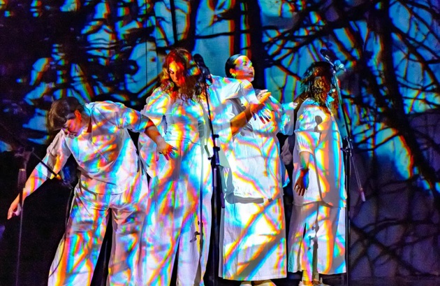 Партитура для пяти голосов, создана специально для перформанса и включает в себя тексты: стихотворение одной из исполнительниц, Марии Гескиной о доме, в котором она живёт с рождения, и фрагменты «Гимнов к ночи» Новалиса. Каждый звук здесь рождается в моменте, через расширенные и импровизационные вокальные техники, но в рамках структур и партитуры заданной темы.