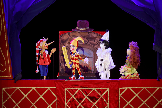 В нашем спектакле старинная актерская повозка становится то каморкой папы Карло, то театром Карабаса Барабаса, то таинственным полем Чудес и увозит зрителей в волшебную страну, где куклы разговаривают, маски оживают, а золотой ключик открывает дверь в мир радости и мечты.