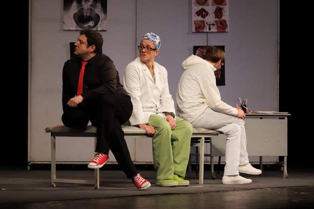 Это комедия одного положения, в котором оказались герои пьесы. Вроде бы обычная ситуация: двое приходят к врачу со своими душевными проблемами. Вот только врач — не психиатр, а проктолог. И пациенты — не люди, а ангел с чёртом.