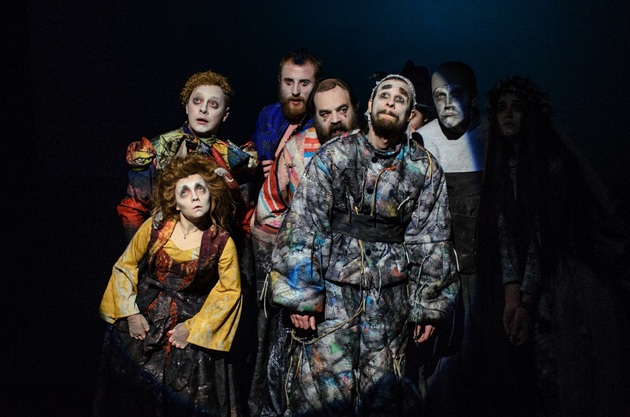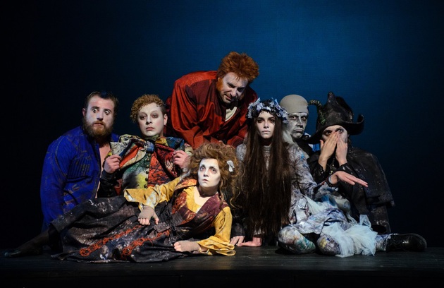 Под звуки оркестра в карнавальном калейдоскопе спектакля вихляются и куражатся, как мелкие бесы, гоголевские персонажи. Панночка с её мертвецкой хваткой, скорбящий по утерянному носу коллежский асессор Ковалёв, сладкоречивый до тошноты Манилов — разноликое отребье карнавального ада, доведённое до абсурда.