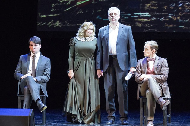 Пушкин или, в данной версии, Автор, как бы раскладывается на три любимых своих персонажа, которым, собственно, и поручается действие. Иногда герои интерпретируют сюжет, иногда, по ходу, — комментируют. И тут, казалось бы, прописные истины пушкинского романа, вбитые в голову еще со школы, перестают быть таковыми. Текст начинает жить своей жизнью. А актеры вступают в непринужденную и актуальную игру с «каноническим» и «неприкасаемым» текстом.