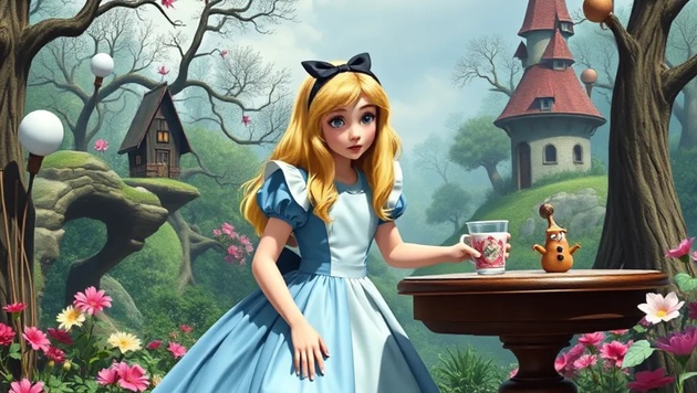Алиса засыпает в уютной гостиной, и её сон тут же начинает пульсировать странными превращениями. Сквозь зеркальные двери, то появляющиеся, то исчезающие, она попадает то в абсурдное чаепитие, где время застыло на 17:00, то в сад, где цветы обсуждают её наряд с язвительной вежливостью.